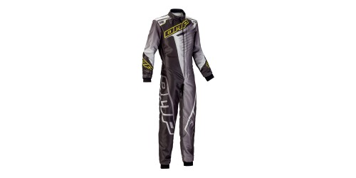 Top level ultra light and totally printed karting suit. Developed with the most important karting teams and drivers. Without seams on waist and seams moved on front to increase driver's comfort. Elastics insert on groin, underfoot retainer, comfortable padding on knees, high breathability inserts under the sleeves, mesh inserts on shoulder and pockets to improve ventilation, low cut neck and velcro wrist closure. Floating arms with elastic bellow and elastic insert on back. Available in trhee colours with a modern printed graphic. NEW COLOUR BLACK/GREY/FLUO YELLOW AND NEW SHAPE TO INCREASE COMFORT