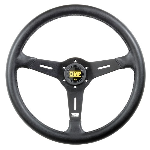 3 spokes flat steering wheel. � 380 mm thought for off-road cars, round handgrip 30 mm in polyurethan. Standard fixing 6 holes, horn button included. Colour: black (OD/2031/NN)